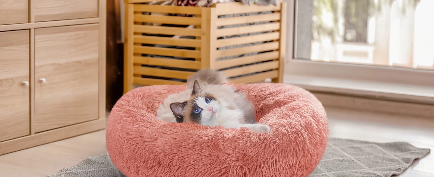 1. Comfortable sleeping design: The donut pet bed adopts a round shape with raised edges to create a sense of security, support the head and neck, and allow your pet to curl up, And find the most comfortable sleeping position, while the internal cotton filling can relieve pressure and help your pet calm down faster and get a restful sleep